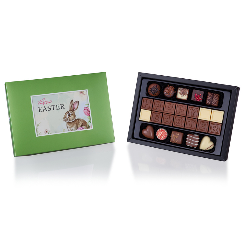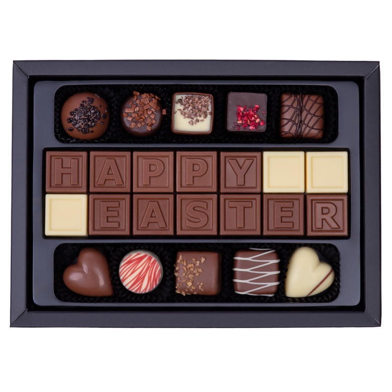 Noul nostru produs pentru sarbatorile pascale este unul inedit, prin modul in care combina cea mai fina ciocolata belgiana cu cele mai placute amintiri cele mai dulci urari din litere de ciocolata belgiana cu mesaj de Paste.