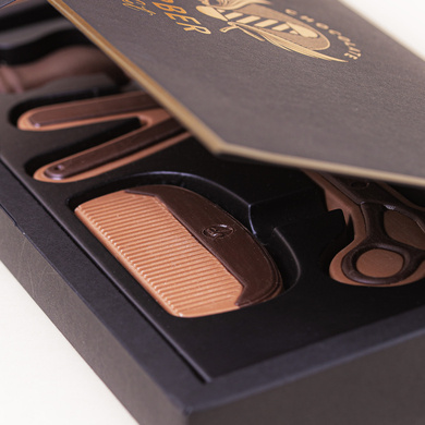 Realizate din ciocolata belgiana cu lapte, cu detalii din ciocolata alba si ciocolata neagra, cele 4 figurine simpatice, ambalate intr-o cutie eleganta cu fereastra, sunt un cadou simpatic pentru cei dragi.
