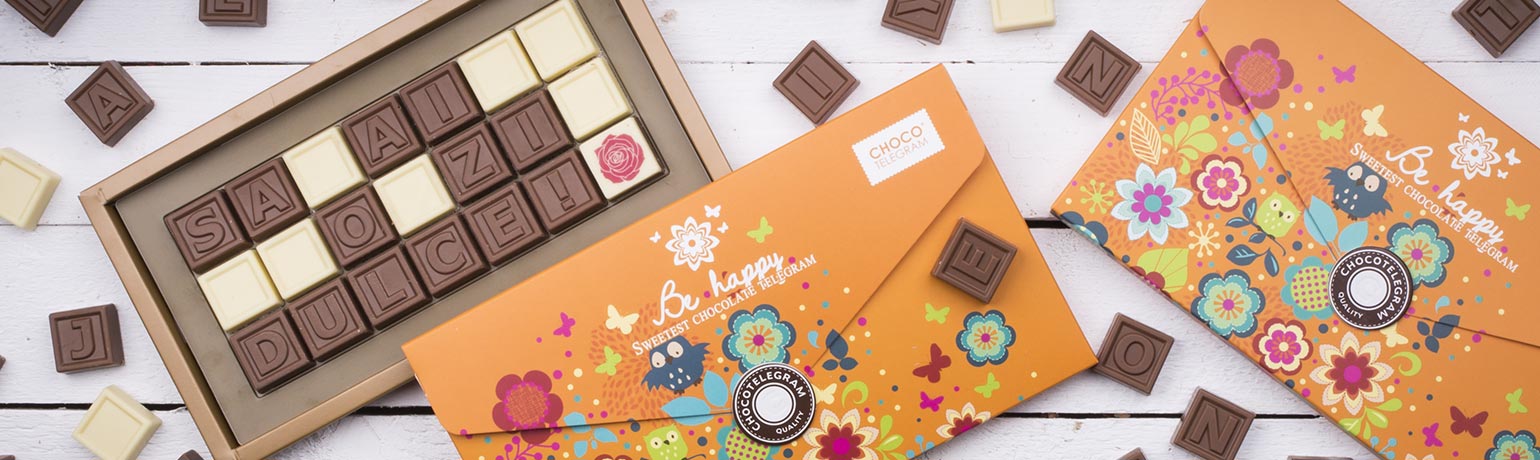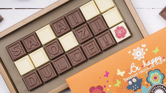 Acum poti sa daruiesti cel mai dulce mesaj cuiva drag. Scrie o telegrama din ciocolata belgiana de cea mai buna calitate.