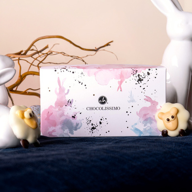 Intr-o cutie eleganta, cu tematica de Paste, am adaugat 6 praline premium din cea mai fina ciocolata belgiana, in forma de oite, cu umplutura delicioasa.