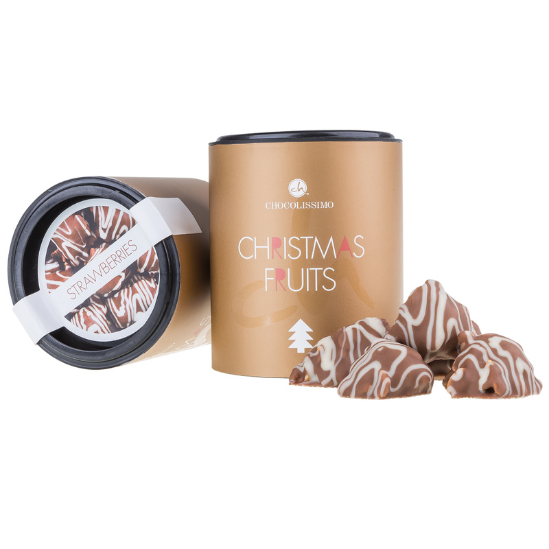Capsune delicioase invelite in ciocolata alba si cu lapte ambalate intr-o cutie eleganta.
