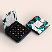 O cutie eleganta ce contine 5 praline selectate cu grija si 21 de cuburi de ciocolata, din care putem compune un text personalizat la alegere.